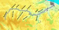 The River Esk is the longest river within the North York Moors, the only one to from from west to east and the only one to flow into the sea (at Whitby). The two sides of the valley are different in character - to the north the valley is lined by an almost unbroken line of lower moors but to the south a series of side-valleys (Danby Dale,